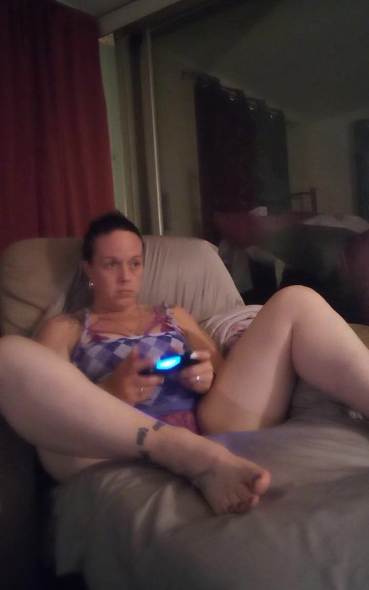 Filming up Step Mom's Mini Skirt While Spreads Her Legs and Teases Me With Her Panties While Gaming